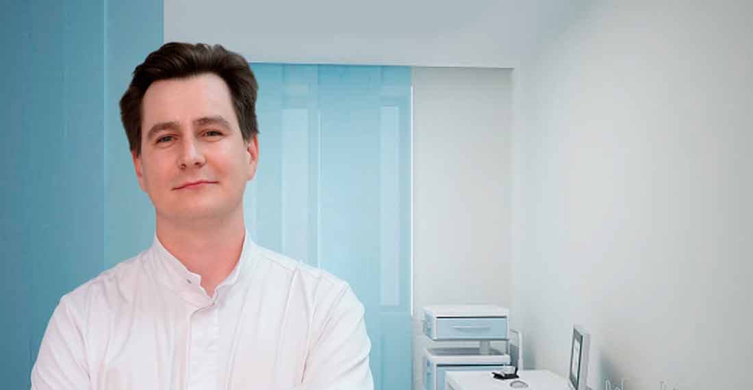 Врач в белой одежде в приёмном кабинете